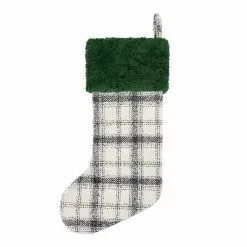 St. Nicholas Square® Green Plaid Stocking With Faux Fur Cuff