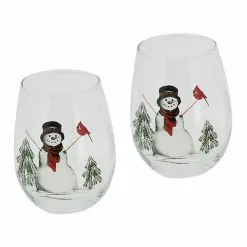 St. Nicholas Square® Yuletide Snowman 2-pc. Stemless Wine Glass Set