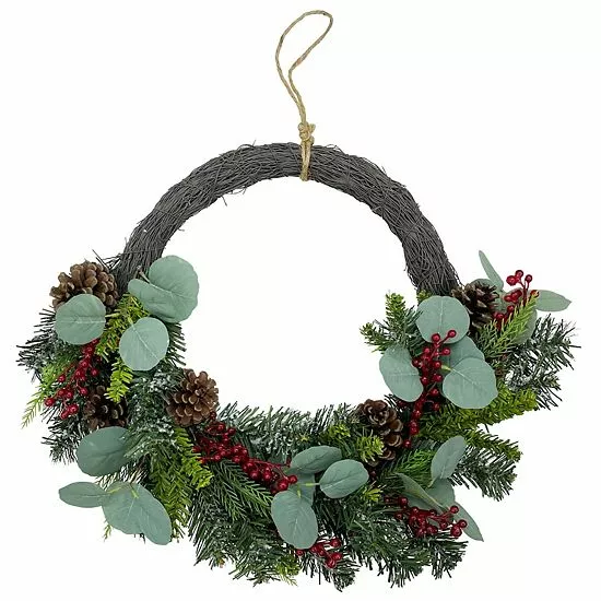 You can’t go wrong with this festive St. Nicholas Square Asymmetrical Artificial Holly Berry Wreath.