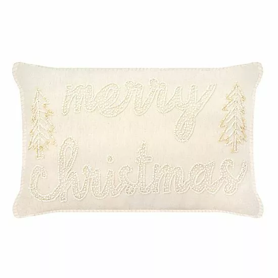 Celebrate the magic of the season with this St. Nicholas Square® Beaded Merry Christmas Throw Pillow.