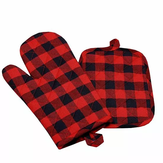Give your kitchen a holiday refresh with this St. Nicholas Square buffalo check oven mitt and pot holder set.