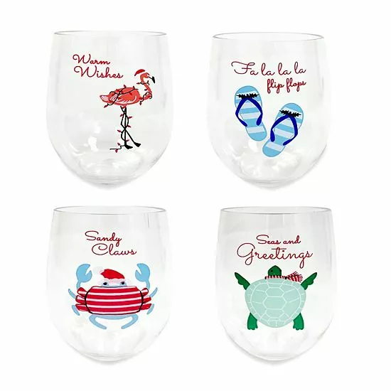 Get your home holiday ready with this St. Nicholas Square Coastal stemless wine set.