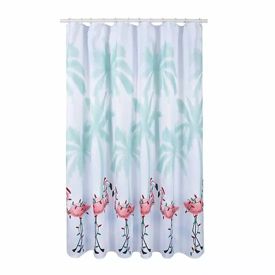 Bring a festive look to your bathroom with this St. Nicholas Square® Coastal Palm Flamingo Shower Curtain.