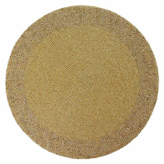Get your home holiday ready with this St. Nicholas Square gold beaded placemat.