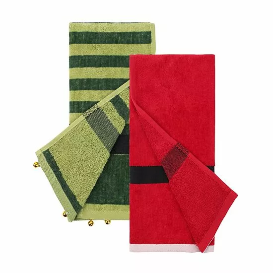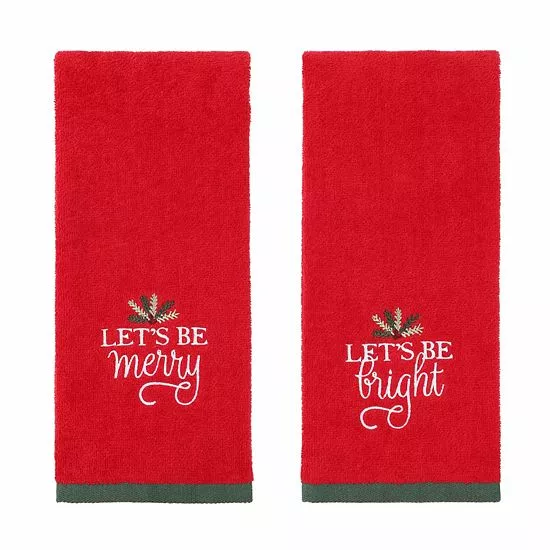 Add a festive look to your bathroom towel rack with this St. Nicholas Square® set of Christmas hand towels.