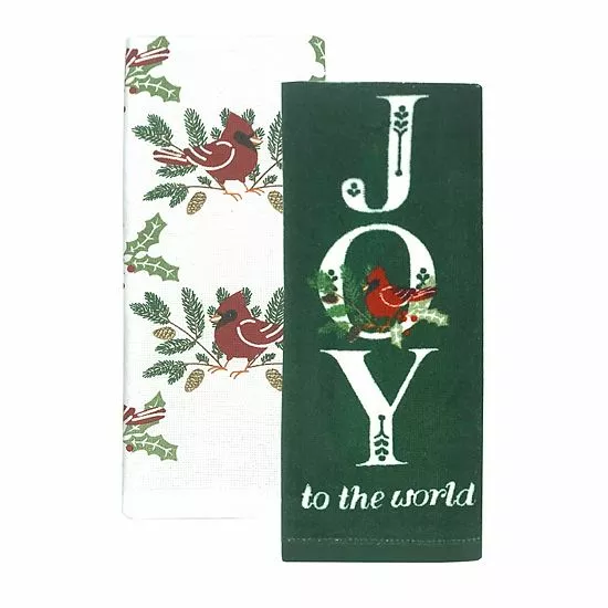 Deck the halls, or the kitchen, with these festive St. Nicholas Square Joy To The World kitchen towels.