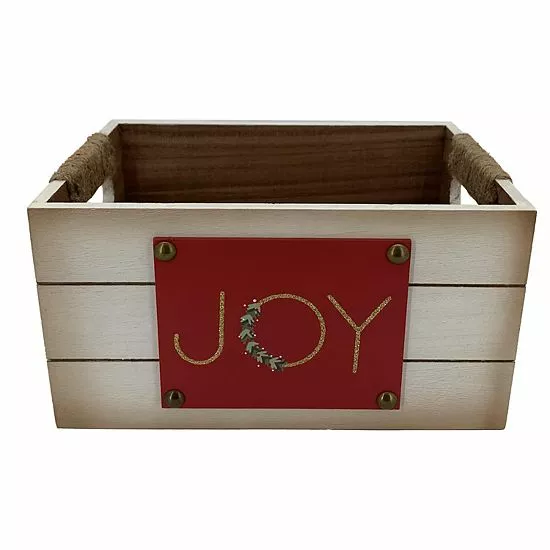 Add a festive look to your existing home decor with this St. Nicholas Square® Joy Wood Crate.