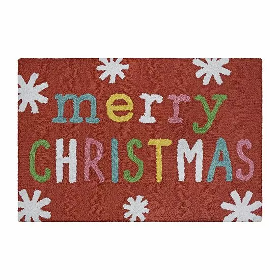 Lend seasonal style to any living area with this St. Nicholas Square® Merry Christmas Hooked 20” x 30” Rug.