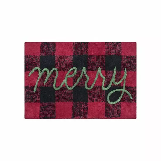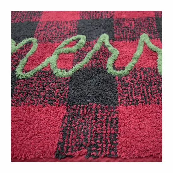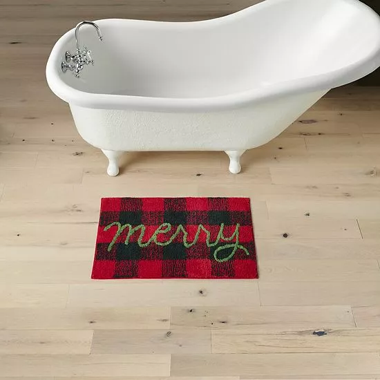 Add a festive look to your bathroom with this St. Nicholas Square® Merry Rug.