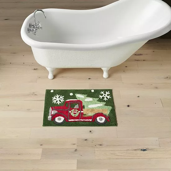 Add a festive look to your bathroom with this St. Nicholas Square® Truck Rug.
