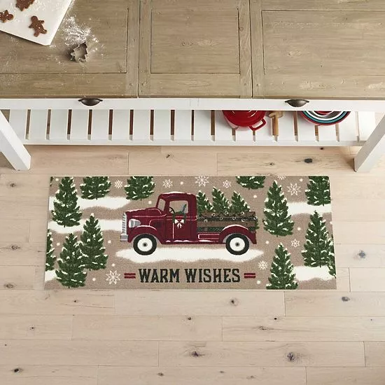 Create a festive feeling with this seasonally stylish St. Nicholas Square® Truck Warm Wishes Holiday Accent Rug.