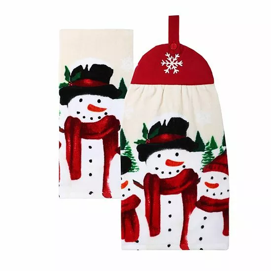 Get your home holiday ready with these St. Nicholas Square Yuletide Snowman tie-top kitchen towels.