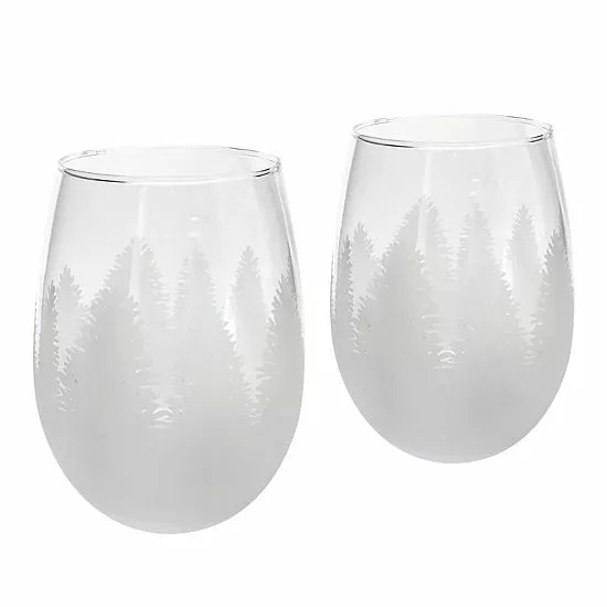 Get your home holiday ready with this St. Nicholas Square Yuletide Trees stemless wine set.